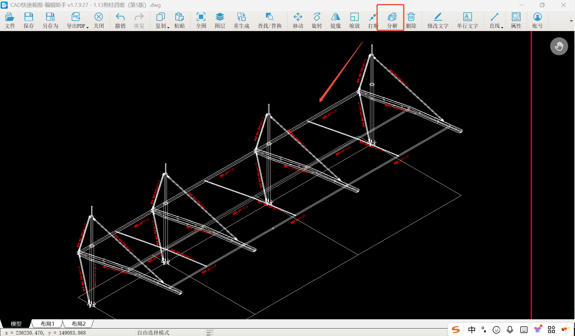 解决方案:用CAD快速看图编辑助手,将三维图元分解为二维多段线或面域,保存后再软件打开。