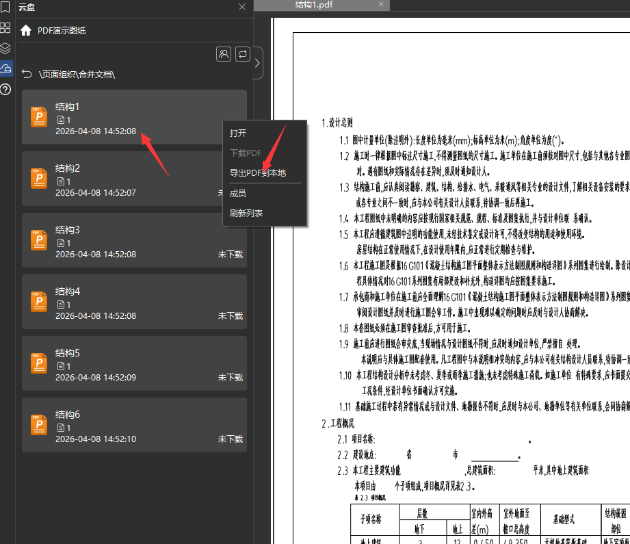 在云盘图纸上右键——【导出PDF到本地】——选择需要【导出的标注】以及【输出路径】——点击【导出】。