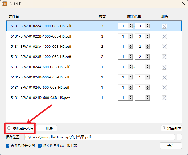 若勾选“合并后打开文档”,则合并完成后的结果文档会被自动打开;