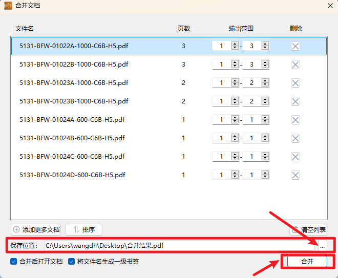 4.选择合并文档保存位置后点击“合并”,即可完成本次的文档合并。