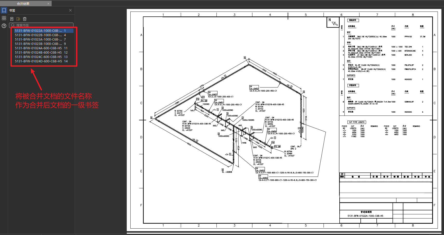 合并图纸,可以将一个项目的多份pdf图纸,合并生成为一个文件,方便查看。
