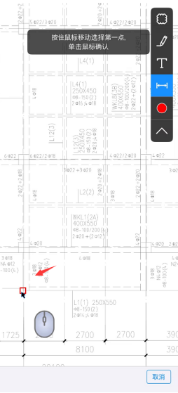 ①点击【连续测量】按钮,按住鼠标移动选择第一点,单击鼠标确认。