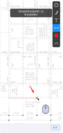 ①点击【长度】按钮,按住鼠标移动选择第一点,单击鼠标确认。