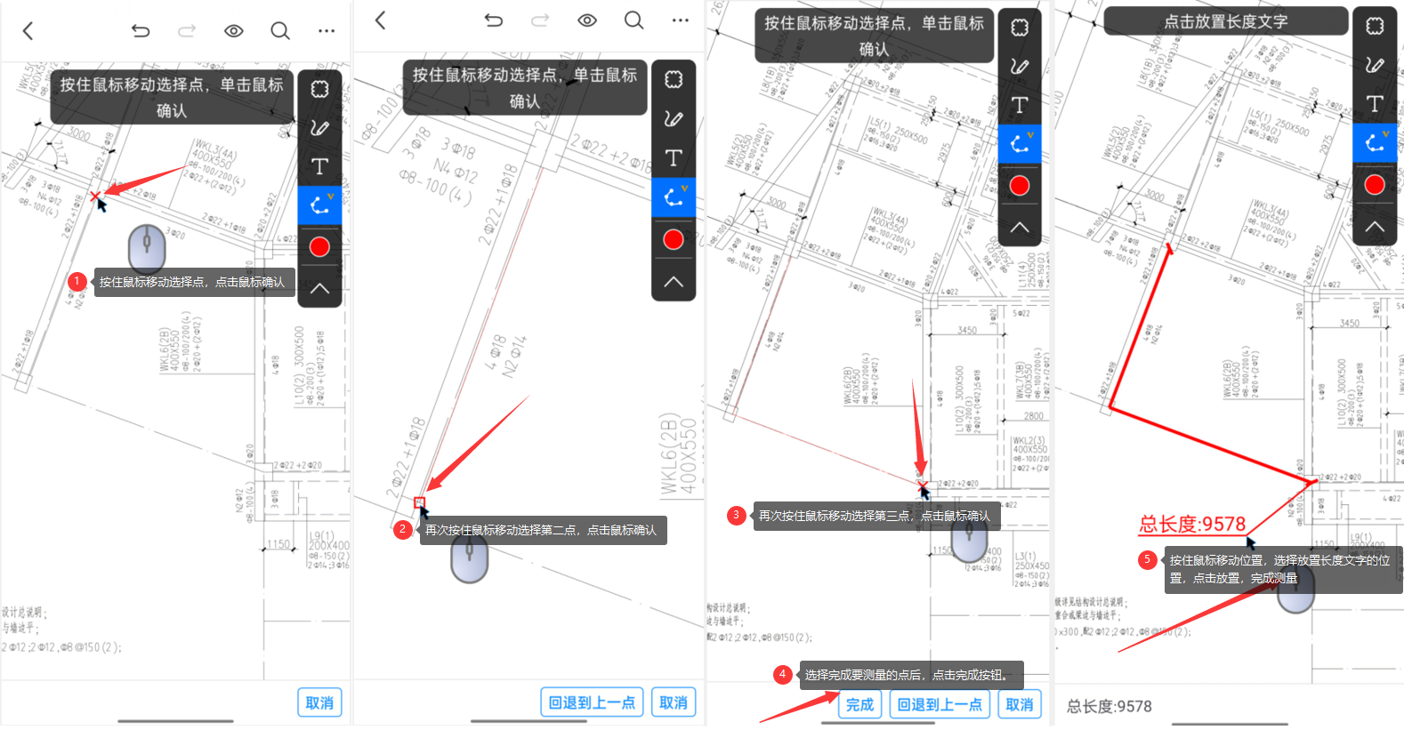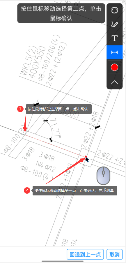 a.测量过程中,点击回退到上一点,可以撤销上一步的操作回到上一点的选择。