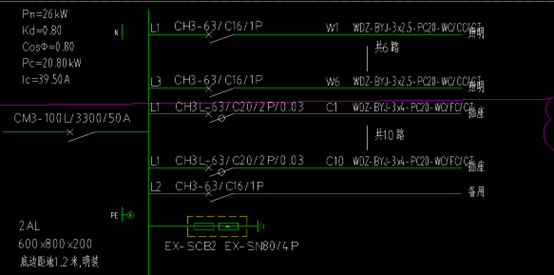1.观察二层照明平面图、2AL配电箱详图和主要材料表,L1配线为WDZ-BYJ-3x2.5,L3配线为WDZ-BYJ-3x2.5,铺设方法为WC/CC/CT。