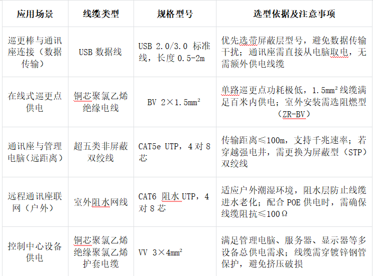 线缆是系统数据传输和供电的“血管”,选型直接影响稳定性。结合《通用安装工程工程量计算标准》及实际场景需求,不同场景的线缆选型规范如下: