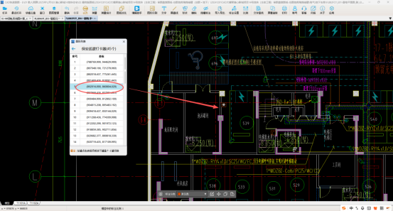 6、点击开始识别,即可完成保安巡逻打卡器的工程量统计,图形列表中,选中坐标点可以定位到对应的图例。