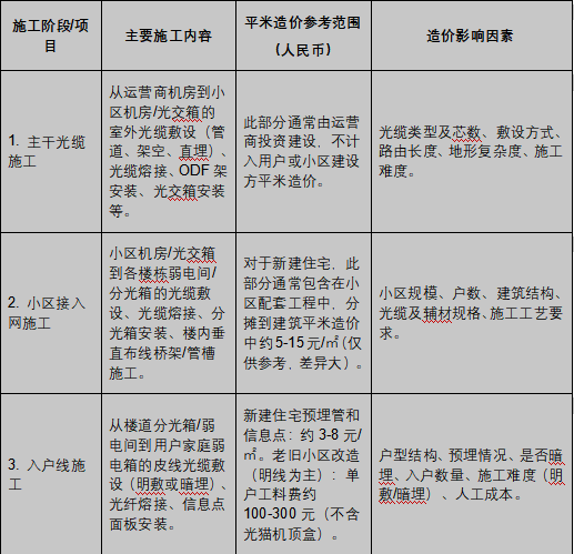 三网融合的施工范围广泛,造价受多种因素影响,以下为经验估算。