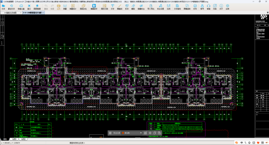 2、现在我们暂定层高3米,光纤分纤箱距地面1.5m,尺寸为800*700*150mm,户内弱电箱距地面0.5m,尺寸为450*350*150mm,入户线缆规格为2*2芯室内皮线光缆-2*PC25通过平面图(下图),三个单元一样,我们使用CAD快速看图的连续测量的方式,测量其中一个单元的水平管线。