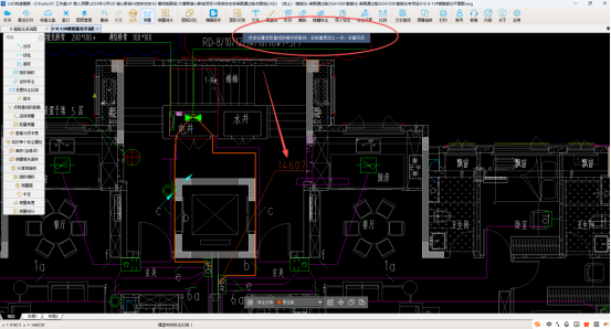 3、CAD快速看图连续测量命令,测量入户水平线,经过测量,水平线缆长度为14.607m。