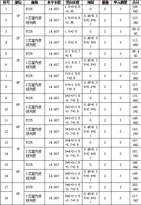 4、通过列表,我们来计算入户配管,皮线光缆工程量。