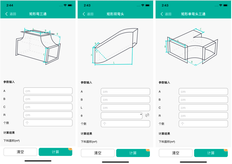 - 各种形状风管面积计算:不管是圆的还是方的风管,展开面积一键搞定,通风管道活儿算量更快了。