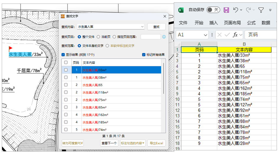 - 文字查找与导出:精准定位文字位置,查找结果可导出Excel或高亮标记