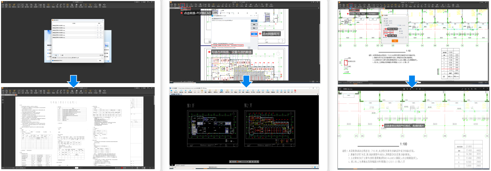 - PDF转CAD:批量将PDF转成DWG格式,支持多页PDF转成一个CAD文件