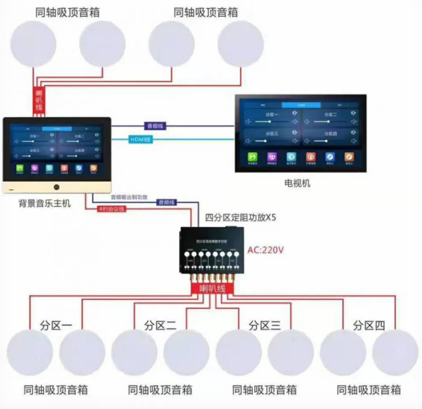 纯后级功放:适合车库、大园林等空旷区域,搭配号角式、定向音柱等大功率音箱,公式是“功放功率=音箱总功率×1.3”,比传统多留10%余量,应对极端天气;
