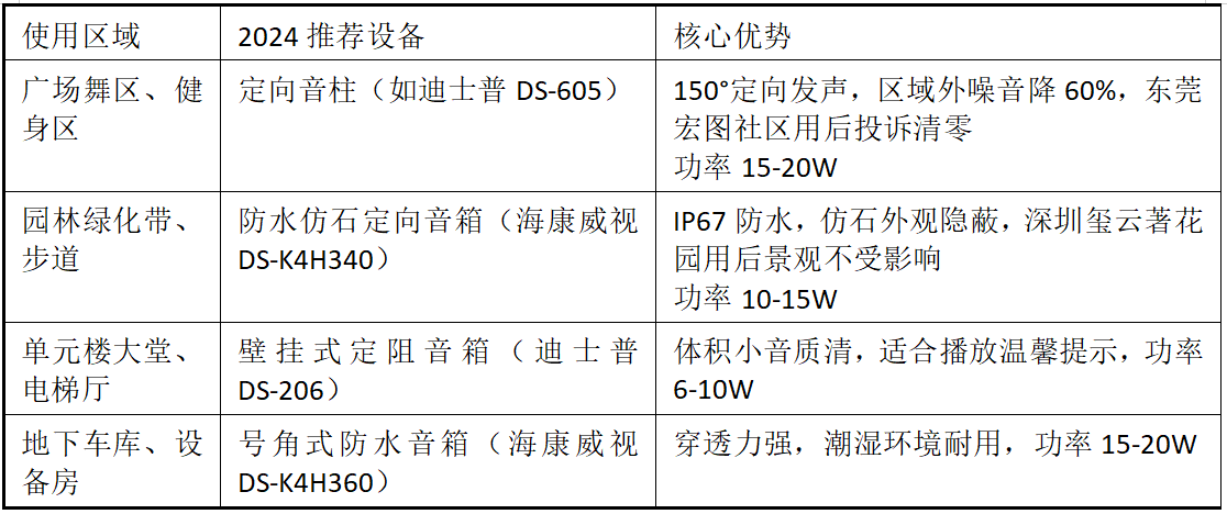音箱是“最后一公里”,2024年室外首选定向音柱,解决噪音投诉的同时还能省设备。