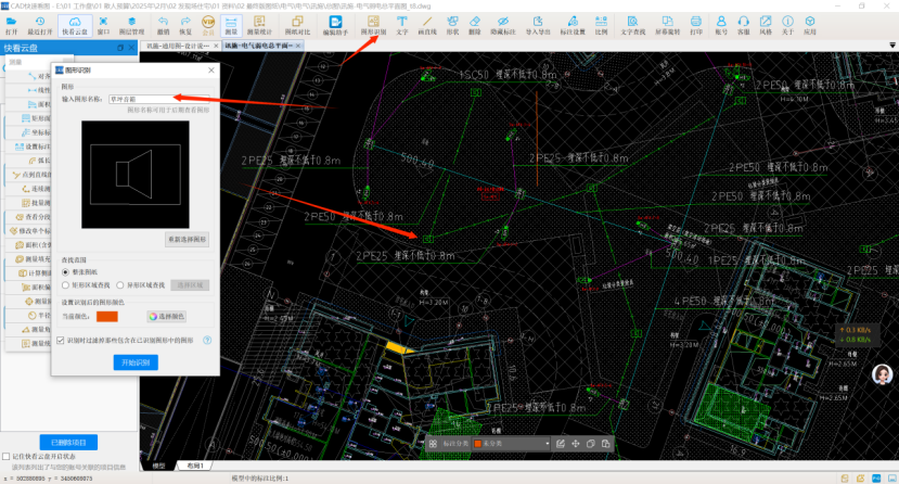 2、使用CAD快速看图图形识别命令,框选图例后,点击右键,在弹出对话框内,输入相关信息