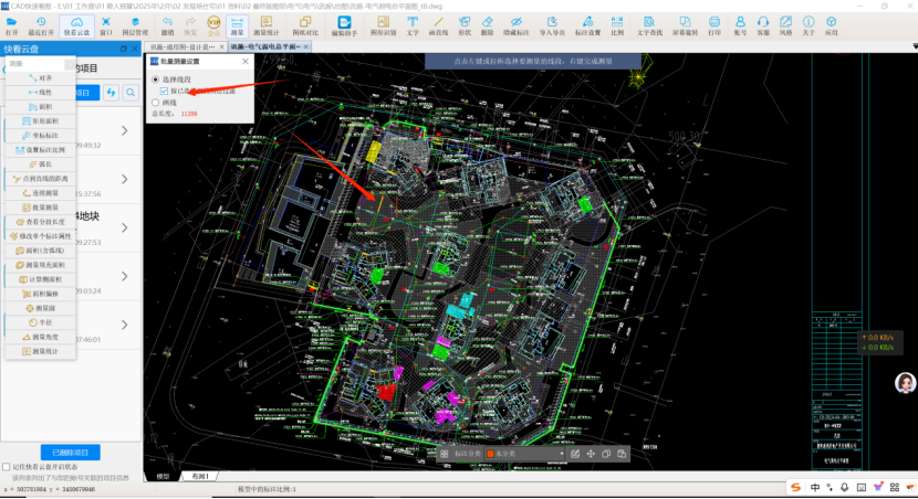 触发批量测量命令,选择CAD线段,勾选按已选线段的图层过滤