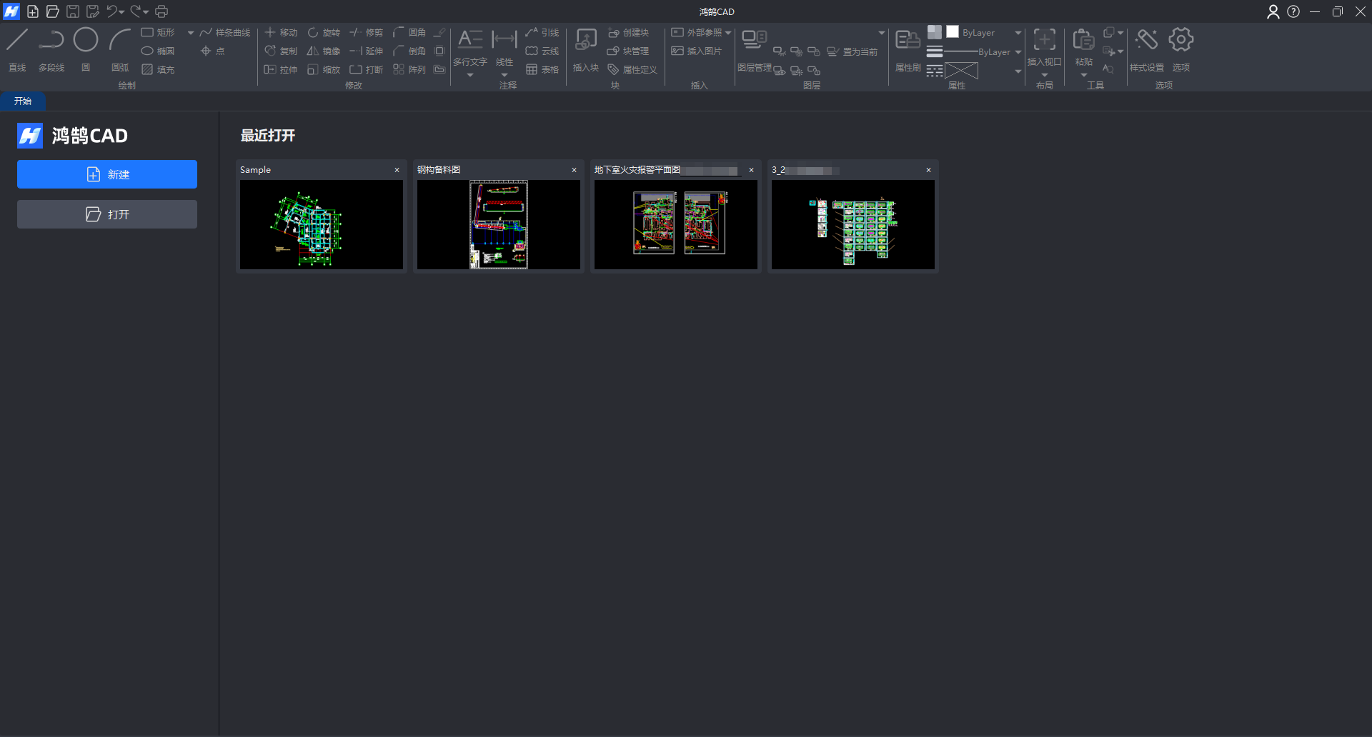 1.启动鸿鹄CAD软件后,将首先进入"开始"工作界面,如图1-2所示。