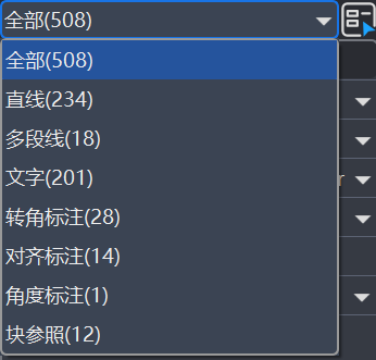 2.在属性列表顶部有下拉菜单,单击下拉菜单可列出当前选中的所有对象类型及其数量。可以在此选择一个特定的对象类型(例如"直线"),让属性列表仅显示该类型对象的属性,进行集中的批量操作,如图1-12所示。