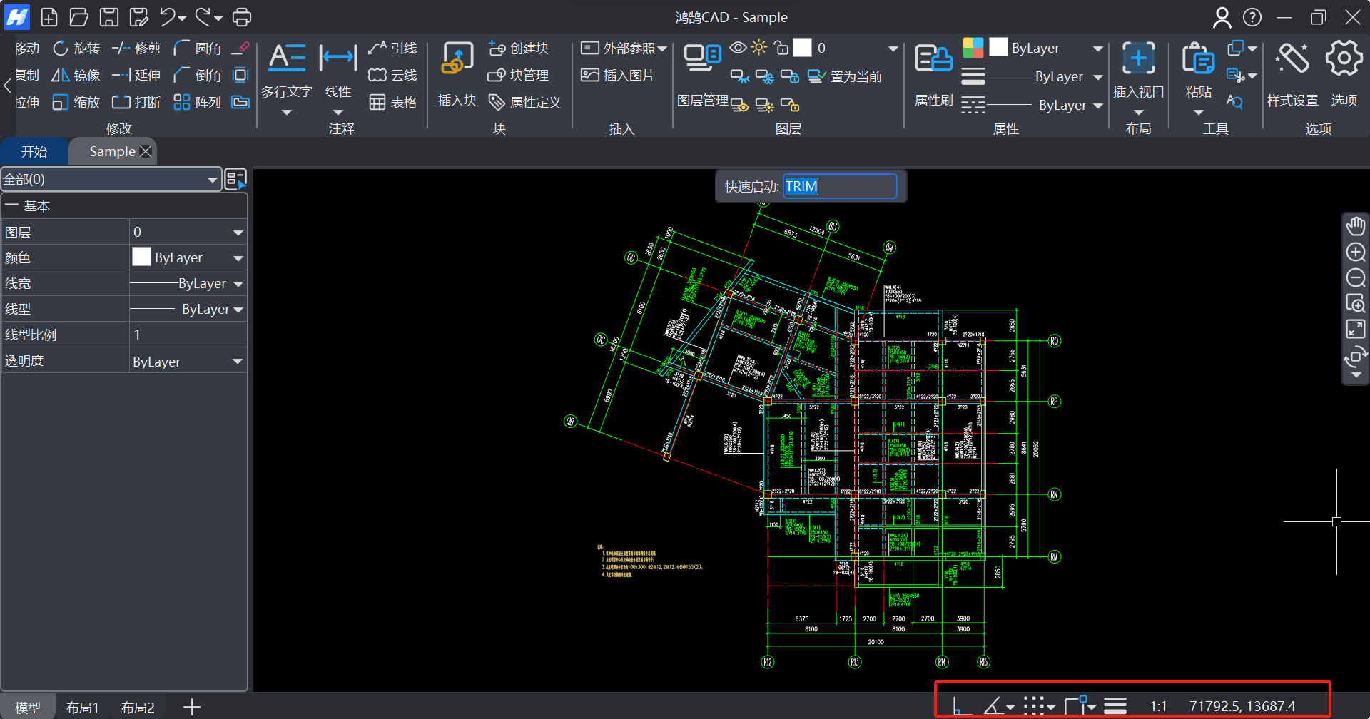 图1-1 鸿鹄CAD操作界面