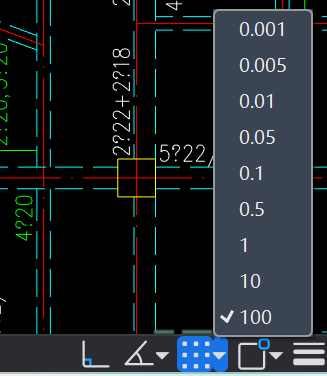 鼠标单击限制坐标精度按钮或按键盘快捷键F9开启/关闭,可以在右侧小三角形点击展开设定坐标精度,如图1-18所示。开启后,在执行直线绘制等命令时,光标附近的数字参数框会遵循预设的坐标精度。