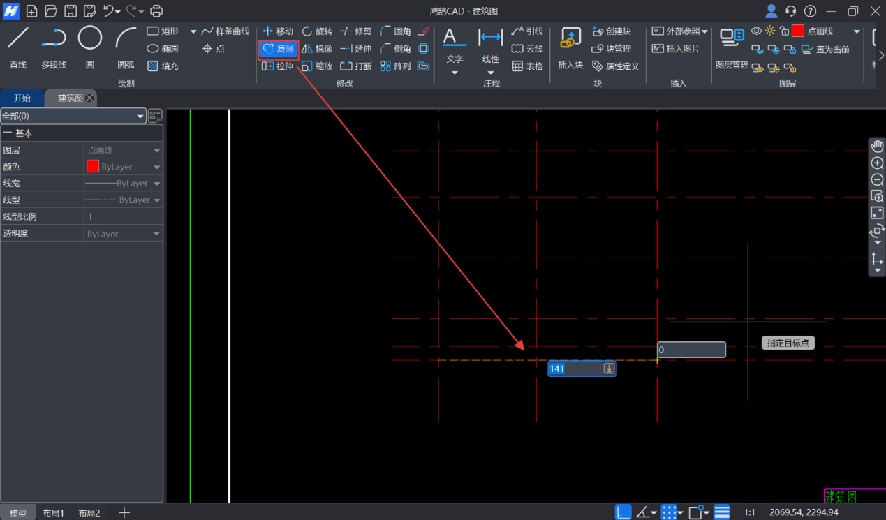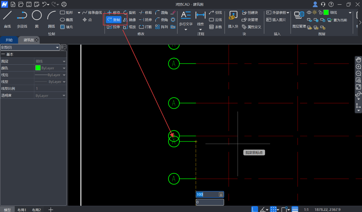然后使用【CO】(复制命令)或【O】(偏移命令)生成轴网。