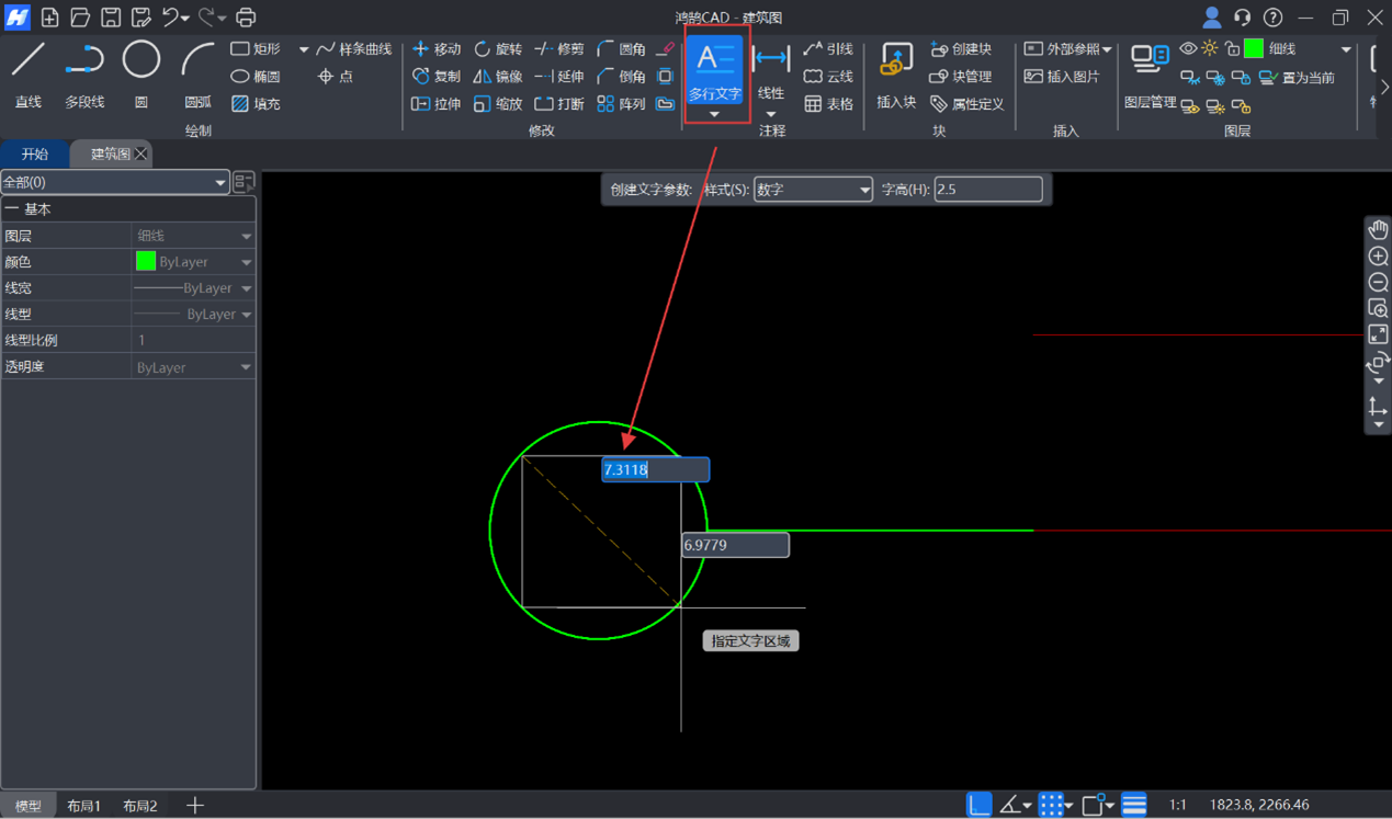 4.输入编号:在【样式设置】中设置默认的中文字体与数字样式,然后使用【T】(多行文字命令)标注:横向编号:阿拉伯数字,从左至右排序,竖向编号:大写拉丁字母(避用I、O、Z),自下而上排序。