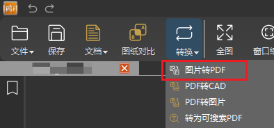 1.点击上方功能栏的转换,选择图片转PDF(可以在未打开PDF时使用)。