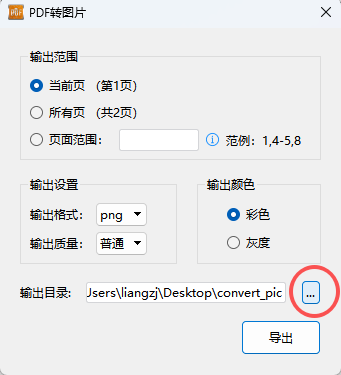 选择输出目录:软件默认会在桌面自动创建一个convert_pic文件夹来存放图片。您也可以点击路径框后的【…】按钮,自定义保存位置。