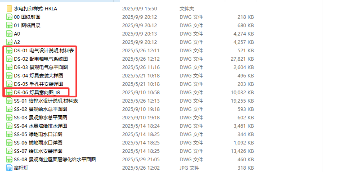 4、下图是灯具意向图提供的样式,有庭院灯、草坪灯,射树灯、灯带等等,这些灯具如何安装呢,计量时候有哪些注意之处,我们再回顾一下图纸内容《DS-01电气设计说明》和《灯具安装大样图》
