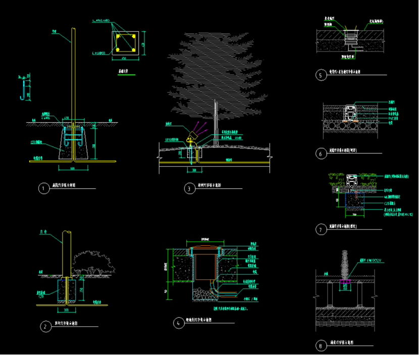 4、我们看到各种灯具的安装,都有固定的大样图,下面算量时,我们以庭院灯为例,介绍CAD快看如何计算景观工程量。先把庭院灯安装详图,和意向图展示给大家。