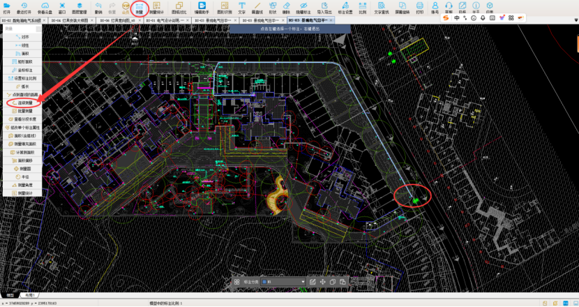 景观电气工程量如何实现快速完成,下面小编介绍几个实用小技巧,结合CAD快速看图的连续测量进行工程量计算。