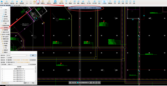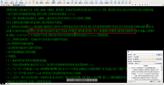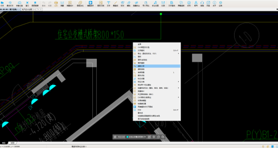 3、识别前,先通过鼠标右键“提取文字”,再进行“文字查找”,粘贴800*150,再选择“矩形区域查找”功能,选择区域(框选平面图位置),区域选择完成,点击查找锁定800*150桥架位置,凸显出来,便捷实用。