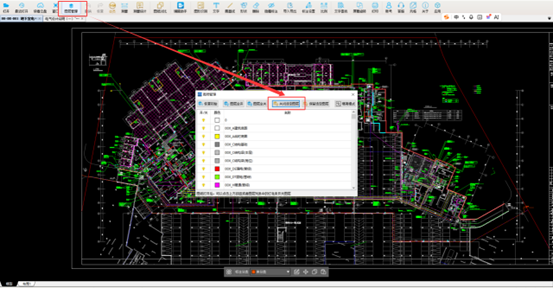 1、在计算工程量之前,利用CAD快速看图“图层管理”功能,关闭辅助图层,让桥架清晰可见。选择工具栏“图层管理”,点击选择关闭选择图层,会弹出“左键单击图元来选中其所在图层,右键完成,退出”